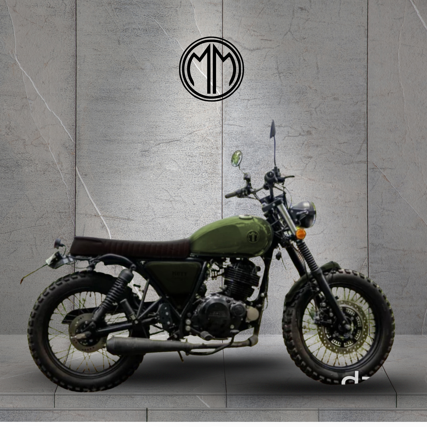 This motorcycle is based on a british MUTT engine of 250cc. The build embodies the essence of a pure scrambler motorcycle. With ABS and an extended double seat, dual sport tires, and coated grey finish , it exudes timeless style and rugged elegance. Whether tearing up dirt trails or cruising the city streets, this bike is designed to keep your soul vibrating with excitement every step of the way.